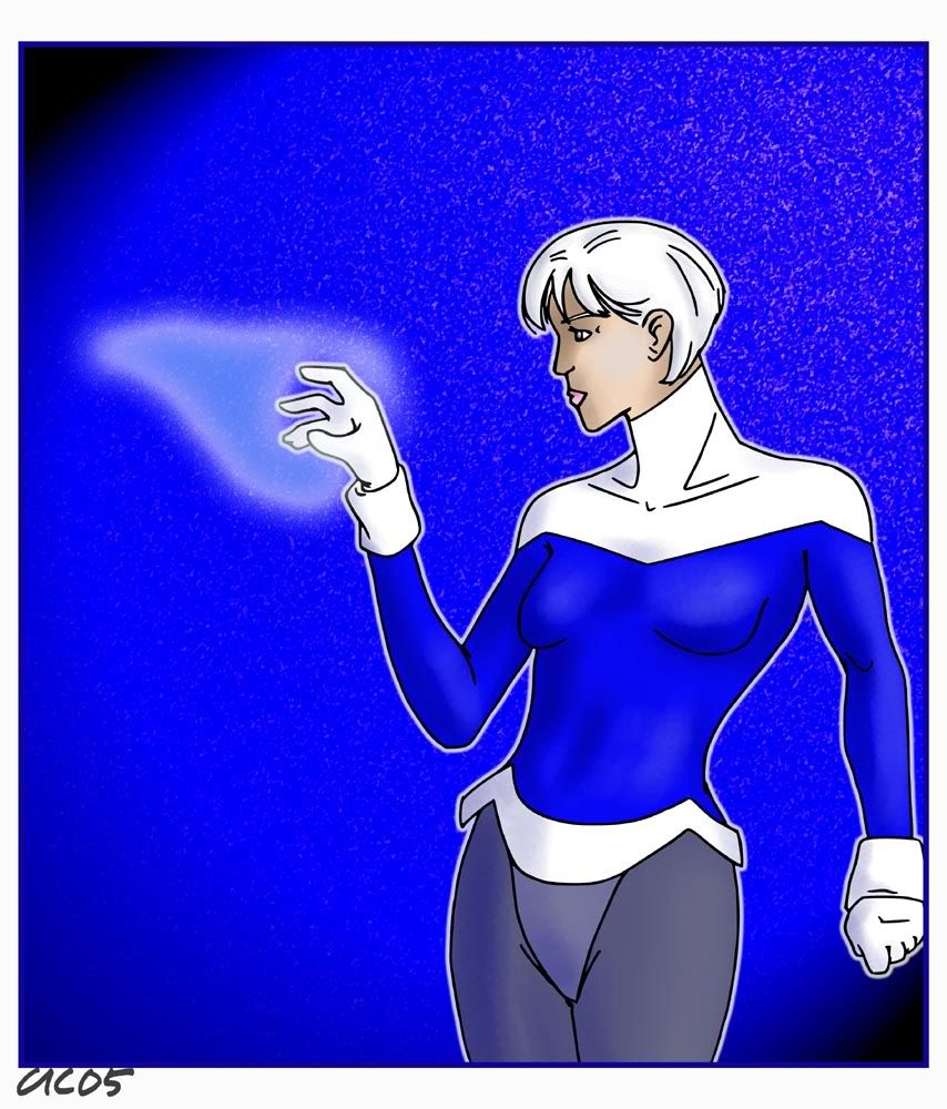 During high school, Angela was on a trip with her family to Canada during the winter months, to visit relatives. While skating with friends, she fell through the ice and was under the near-freezing water for over an hour. She was pulled from the water and pronounced dead. Nevertheless, the paramedics and physicians attempted to bring her temperature up slowly, and she was eventually revived successfully, with no apparent permanent damage. Several months later, however, she began to manifest the ability to control her body's temperature and the temperature of water in the air around her. She kept her powers secret, and for a time in college tried to become a superhero on her own (with some success, but eventual disaster). She has supressed her abilities since that time, although she secretly yearned for many years to become a superhero, and eventually did, in 2005.